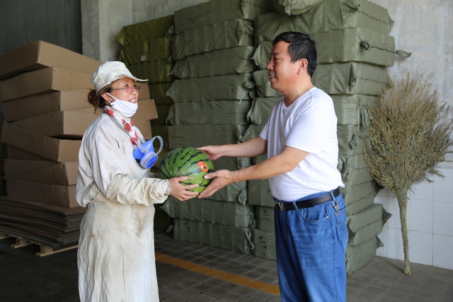 韓主席為我公司壓片崗位職工送來(lái)西瓜等防暑用品