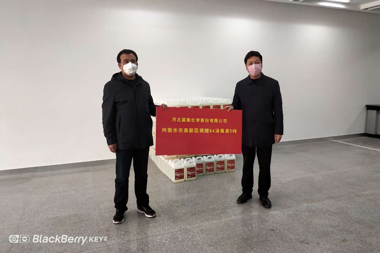2月4日,我公司為衡水市疫情防控工作指揮部捐贈(zèng)10噸84消毒液,衡水市新型冠狀病毒感染的肺炎疫情防控工作指揮部副指揮長、副市長崔海霞代表市疫情防控工作指揮部接受捐贈(zèng)。